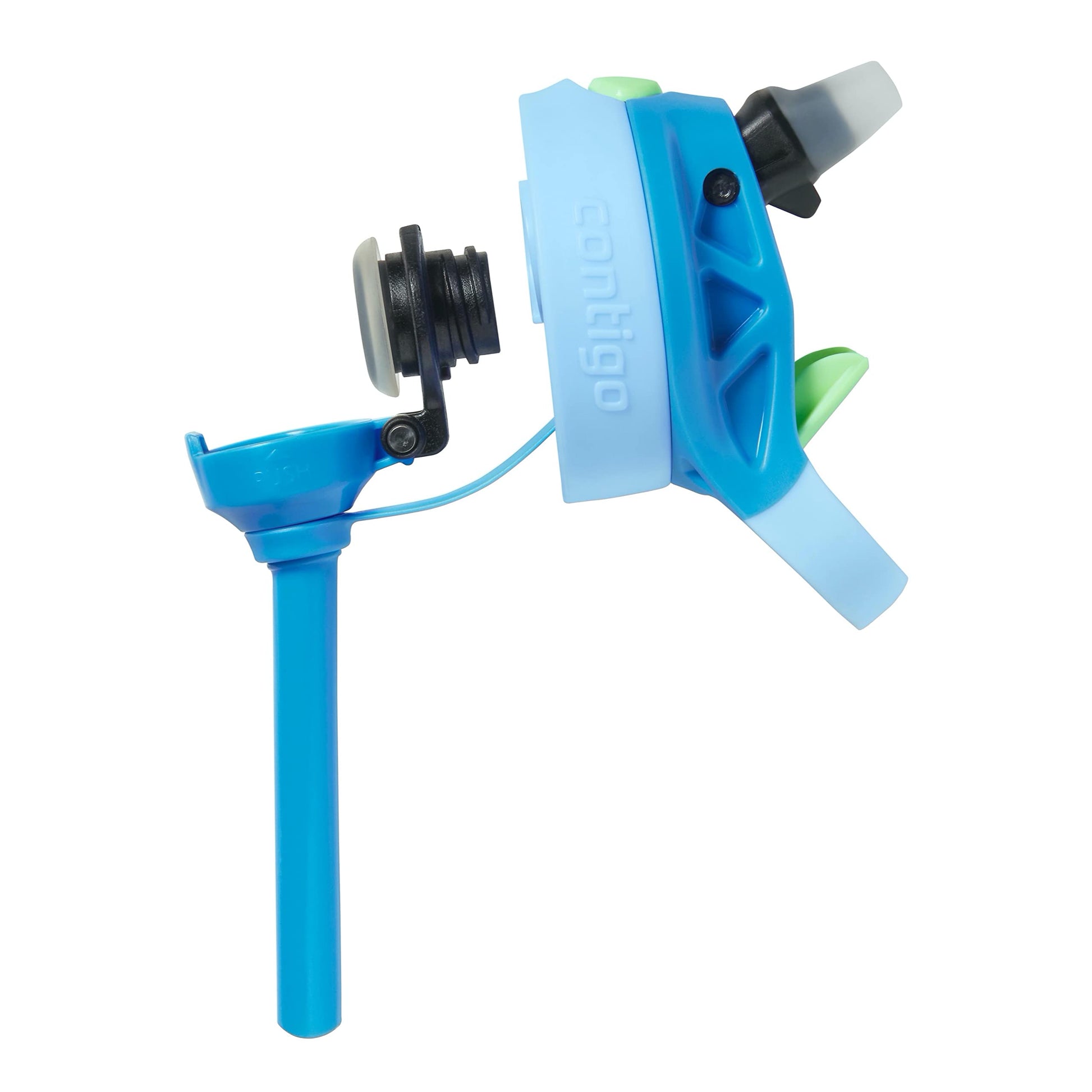 Details: Fret no more, the Contigo Kids AUTOSPOUT Straw Water Bottle with Easy-Clean Lid has come to the rescue! Kids get a kick out of pressing a button to open the pop-up straw for effortless one-handed drinking, and they can easily push the spout under the cover to protect the mouthpiece from the elements. Adults appreciate that the straw features a spill-proof valve so car seats and tables are safe from spills—even if little ones hold the bottle upside down. When it's time to clean up, you’ll be happy to know that all parts are top-rack dishwasher-safe, the lid easily disassembles for full-access cleaning, and the lid is designed to eliminate all nooks and crannies in which dirt and grime might accumulate. Rest assured, your new water bottle comes with a lifetime guarantee and is made with FDA-approved, BPA-free materials that won’t give off plastic odors or tastes. For ages 3 and up.