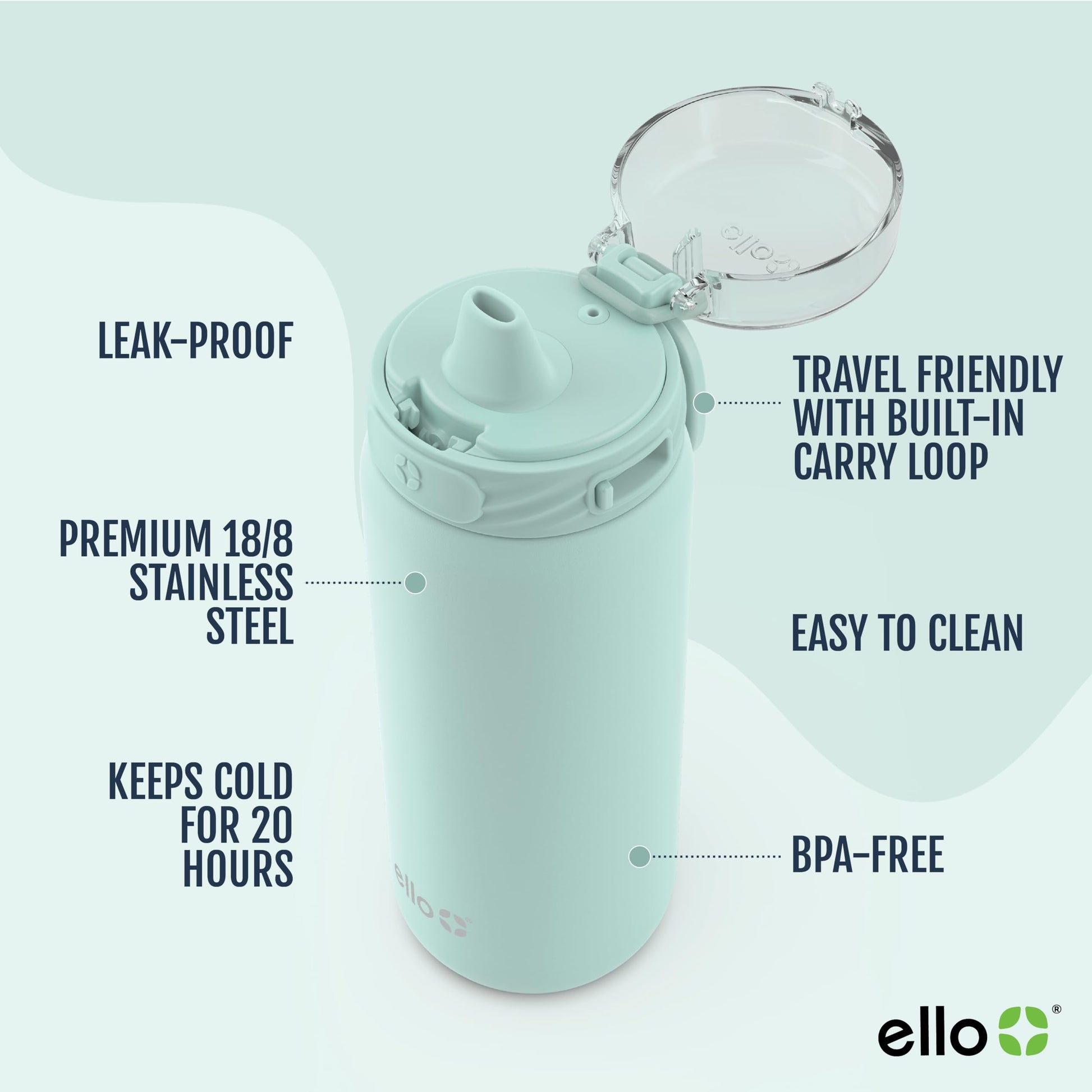 Details: Elevate your hydration experience with the Ello Cooper Vacuum Insulated Stainless Steel Water Bottle. Available in 18oz, 22oz, 32oz, and 40oz sizes, it’s a perfect fit for every age. Plus, the 18oz and 22oz sizes are car cup compatible. Featuring a soft silicone spout and a secure, locking dome lid, Cooper ensures your drink surface stays fully covered during transport. The BPA-free internal plastic straw provides safe and easy sipping. Constructed from premium 18/8 stainless steel with an ultra-durable powder coat finish, this bottle resists chipping and rust for lasting durability. Enjoy refreshingly cold drinks for over 24 hours. All parts are top-rack dishwasher safe, but handwashing is recommended for longevity. The spout can be fully disassembled for thorough cleaning, reaching all nooks and crannies with ease. Express your style with our selection of vibrant colors, allowing Cooper to complement your lifestyle and personal fashion statement.