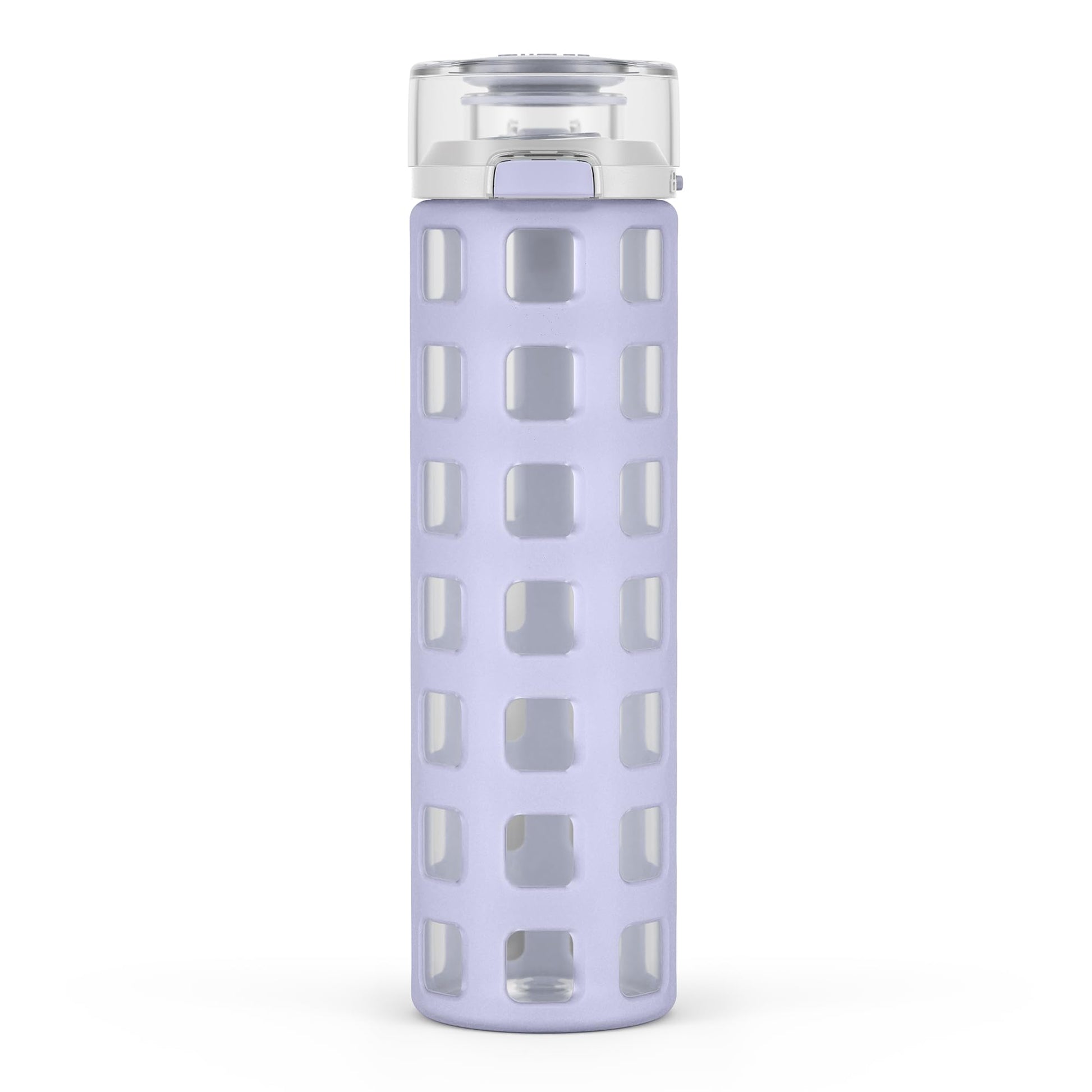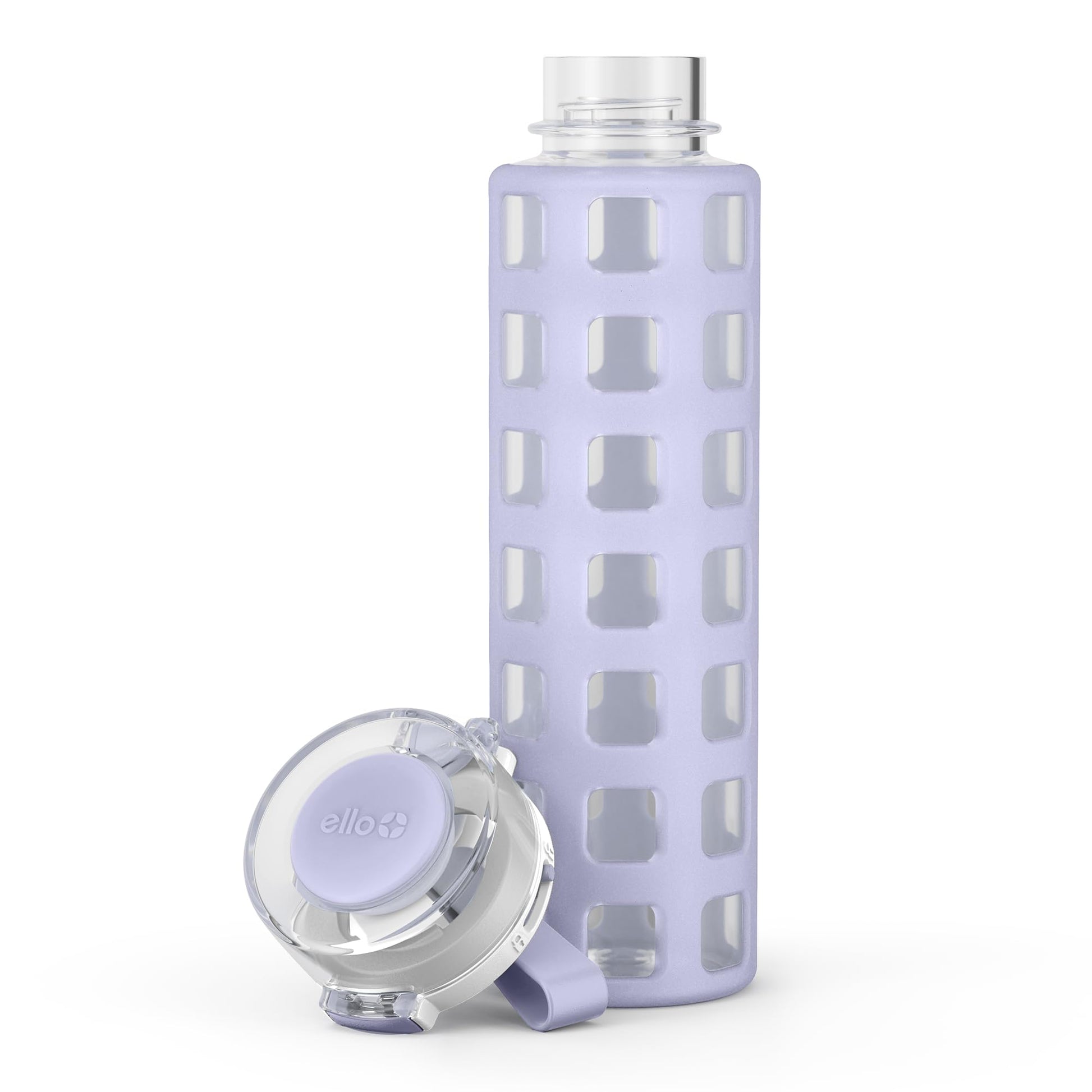 20 oz Ello Syndicate Reusable Glass Water Bottle with One-Touch Leak-Proof Flip Lid, Non-Slip Silicone Sleeve, Carry Loop, BPA-Free, Dishwasher Safe, Celeste