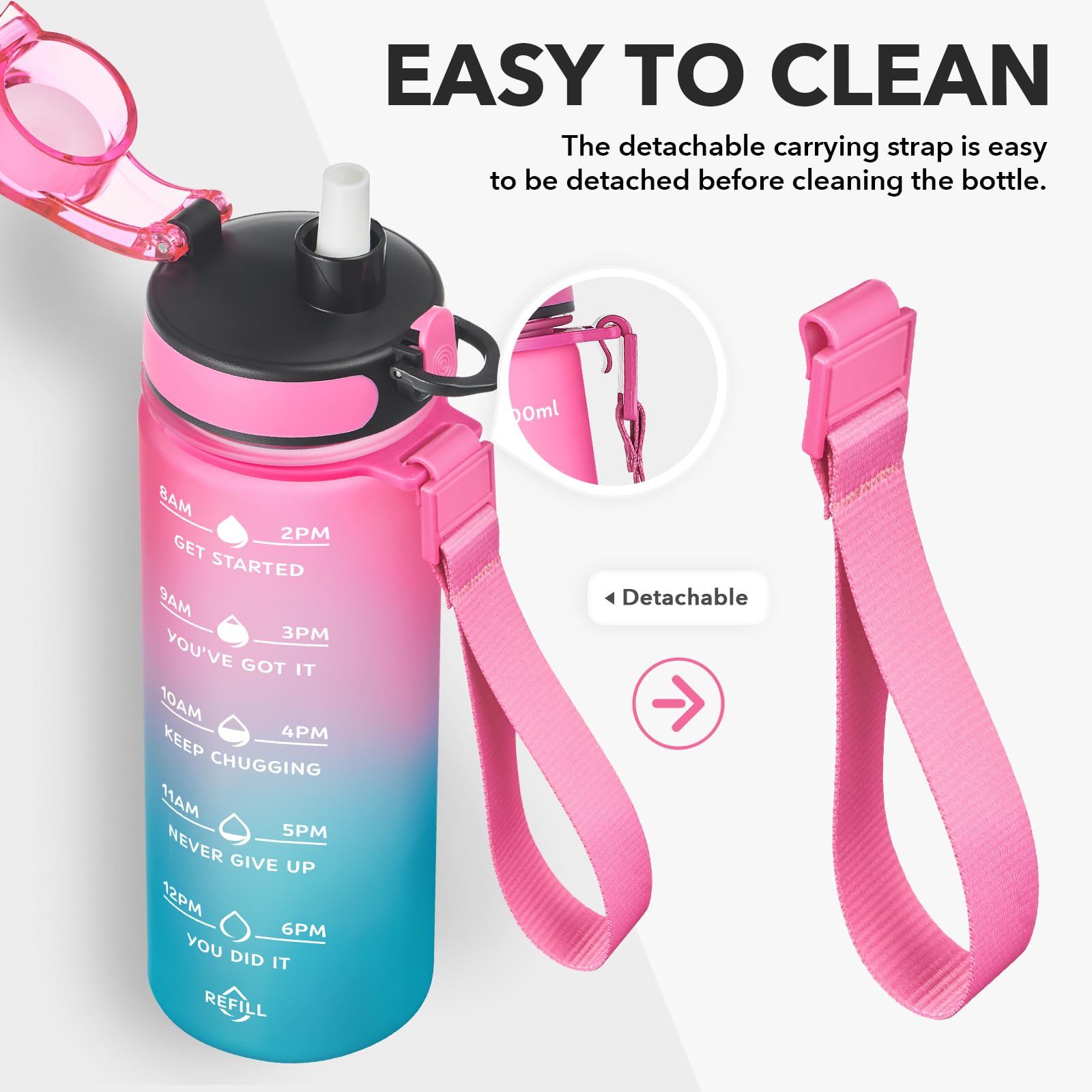 Enerbone Leak-Proof BPA-Free Motivational Water Bottle with Straw and Time Markers, Fitness Sports Bottle with Strap for Office, Gym, Outdoors