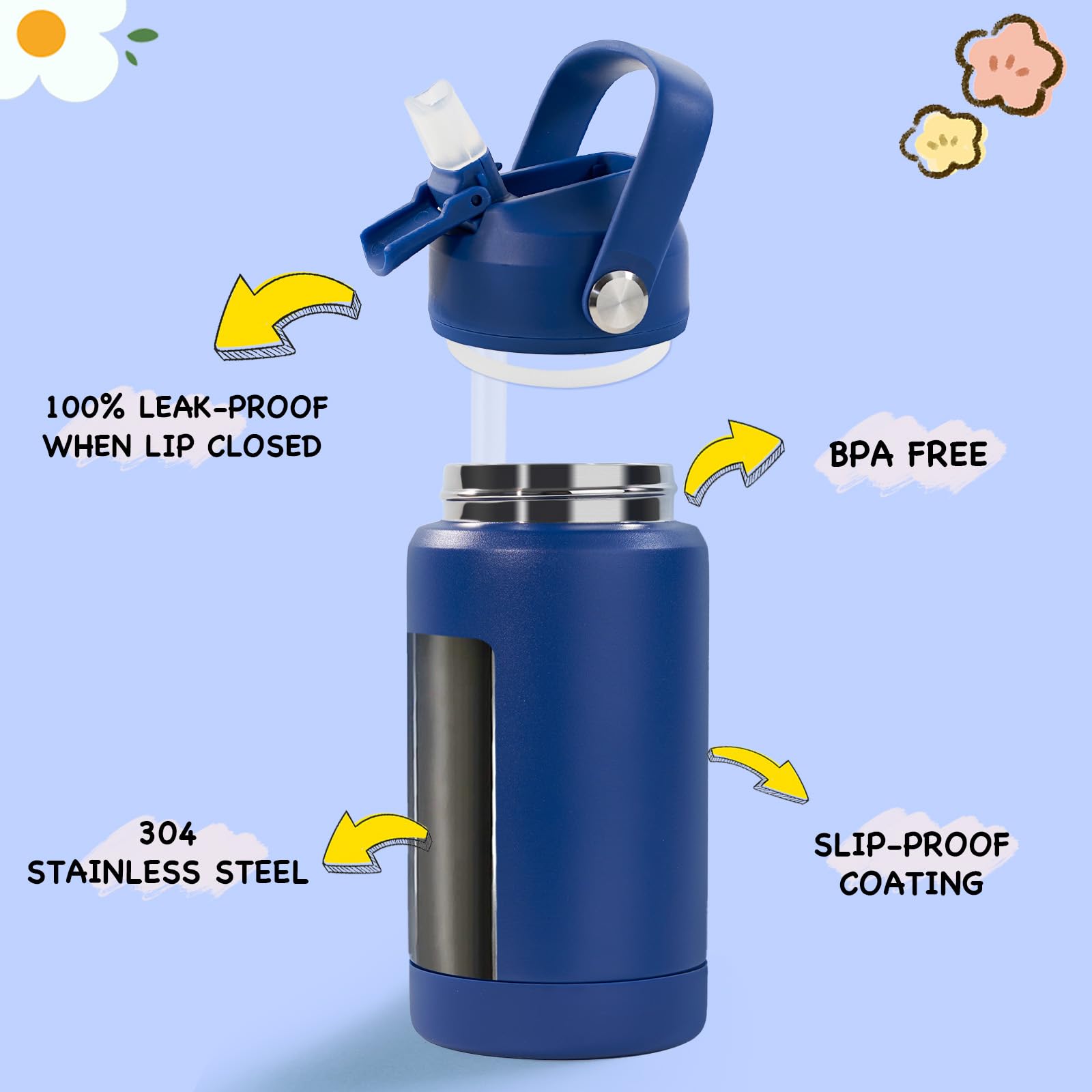 12 oz Kerilyn Kids Stainless Steel Insulated Water Bottle with Straw, Leak-Proof, BPA-Free, Blue, School Toddler Cup for Boys & Girls