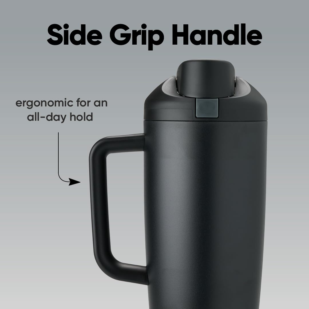 - Built for comfort, convenience, and clean sipping : Hygienic push-button lid keeps spout clean; double threaded lid and side handle are right-handed and left-handed friendly