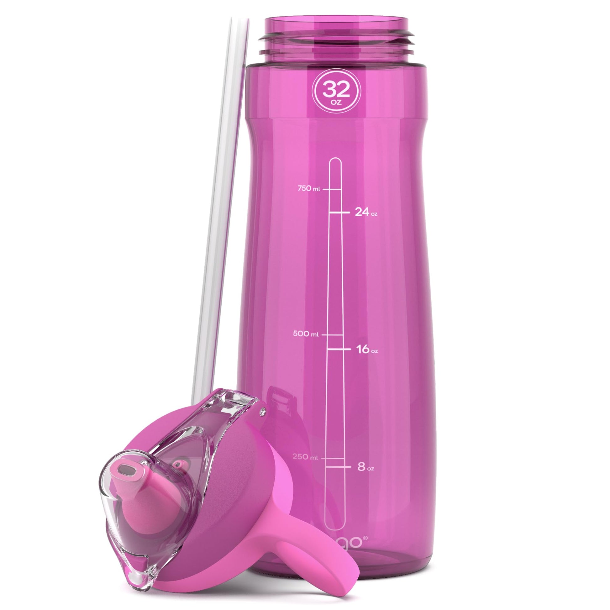 Details: The Pogo 32-Ounce Plastic Water Bottle is compact and portable, making it ideal for lunch bags, purses and briefcases. Made from sturdy and stylish Tritan, this durable bottle will be hydrating you for years to come. The Soft Straw-style lid has a leak proof cover and is great for fast hydration and the soft touch carry loop makes it easy to bring this bottle with you wherever you go. This water bottle is great to have while working out or in the cup holder while you are driving. All parts are easy to clean in the top rack of a dishwasher. Pogo is dedicated to creating stylish drink ware that provide our customers with hydration when they need it the most.