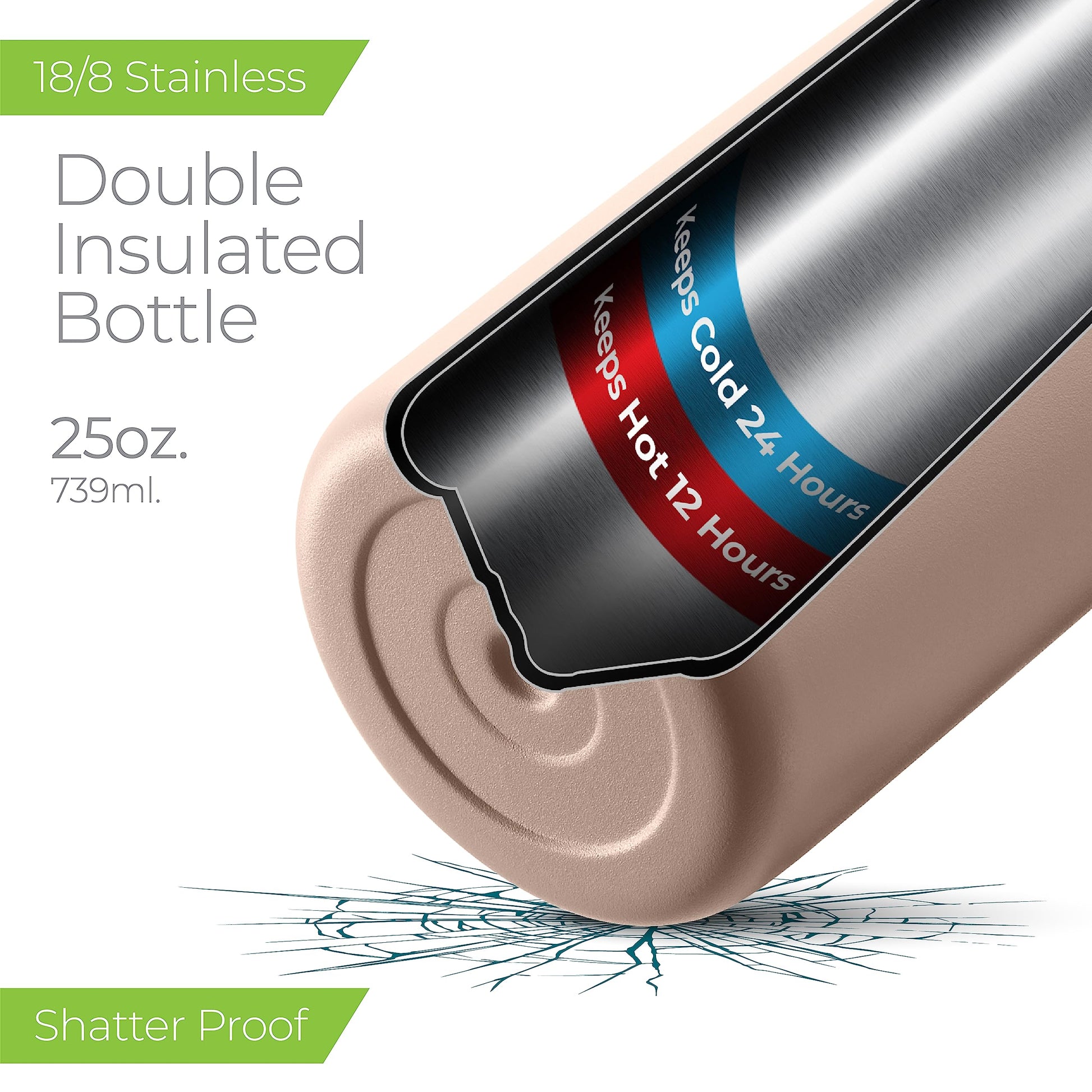 - TRIPLE INSULATION BOTTLES - Our water bottles are crafted with triple insulation to keep your drinks hot for up to 12 hours and cold for up to 24 hours! Say goodbye to lukewarm drinks and hello to refreshing sips all day long.