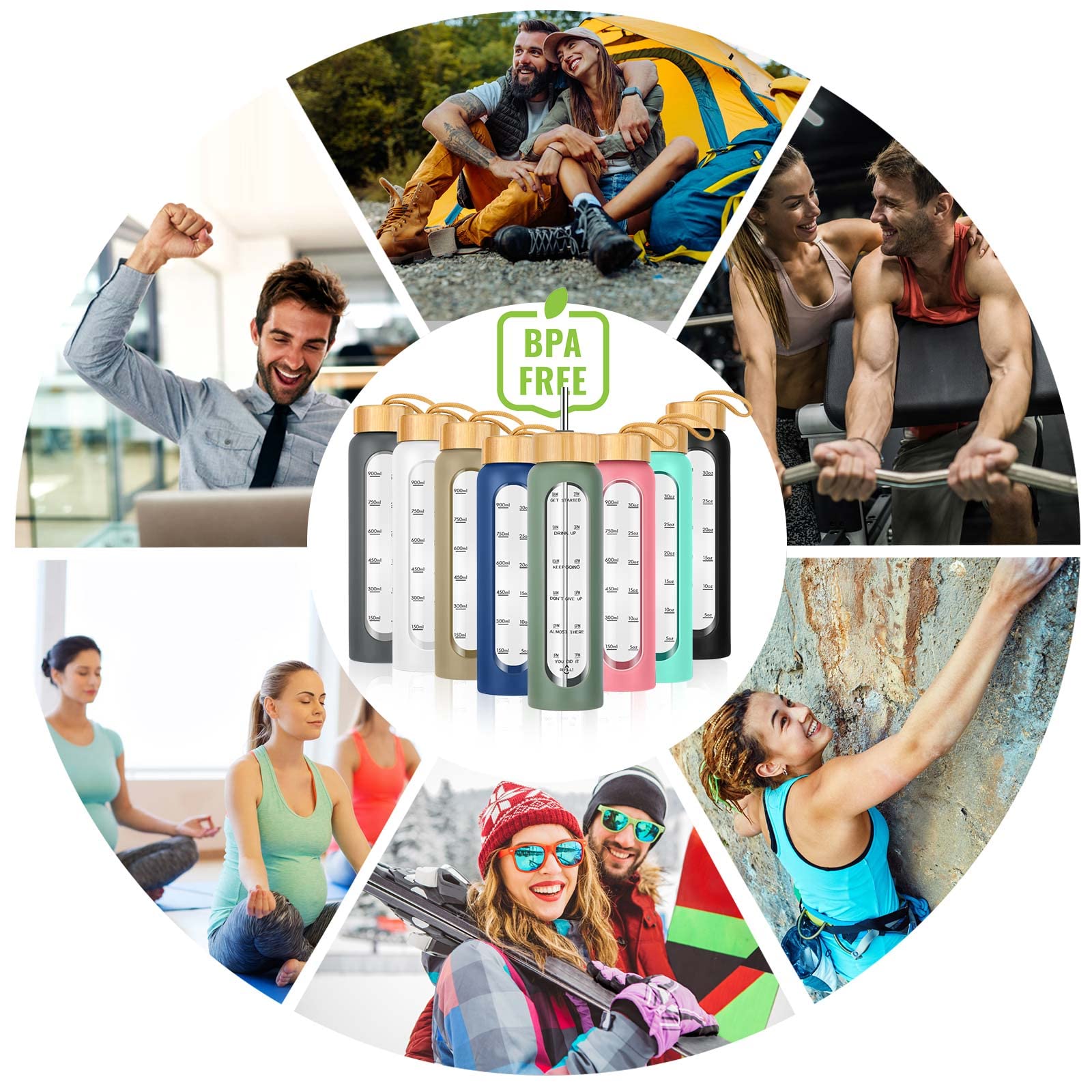 - Stay Motivated - Easily track your water intake throughout the day with tracking directly on your clear glass water bottles with times to drink. Reach your health goals whenever your day takes you with these aesthetic water bottles